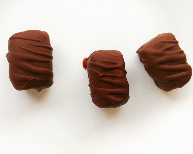 ניתן לקשט למעלה כמו בתמונה באמצעות כף – נאסוף קצת שוקולד ונעבור מעל החטיף בתנועות זיגזג
