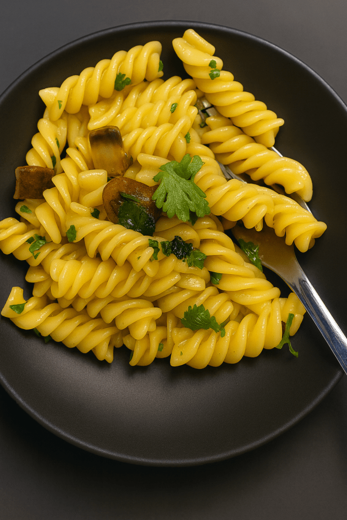 זה בדיוק המתכון בשבילכם – פסטה ברוטב קארי–פטריות קרמי, שממלא את הבית בניחוחות .